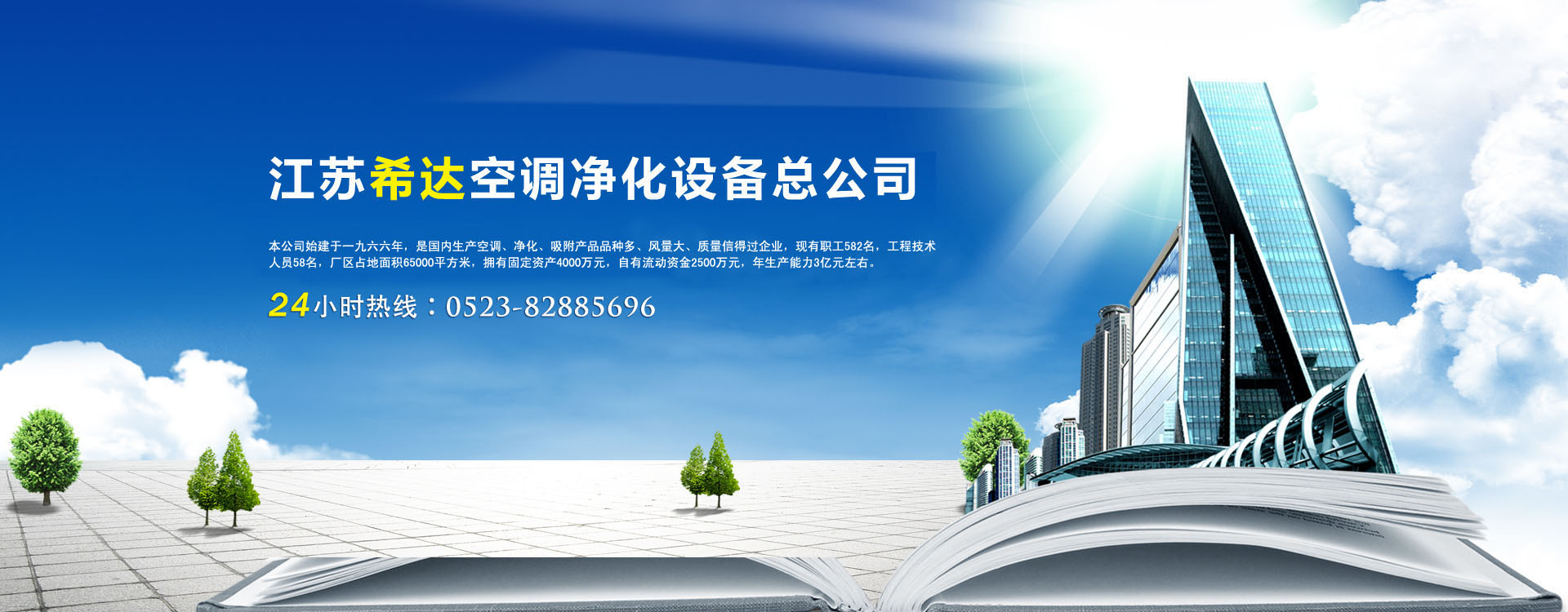 江蘇希達(dá)空調(diào)凈化設(shè)備總公司是與中國(guó)電子工程設(shè)計(jì)院共同投資建立的國(guó)家中型企業(yè)。 位于江蘇沿江開發(fā)地段,上海浦東開發(fā)區(qū)的輻射帶,交通、信息十分便捷,總公司下設(shè)專業(yè)分公司:靖江希達(dá)環(huán)保空調(diào)凈化設(shè)備有限公司、江蘇希達(dá)中央空調(diào)有限公司、揚(yáng)子空調(diào)聯(lián)合工程公司。